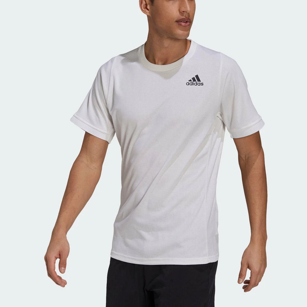 Take your game higher in the adidas Gameset Freelift Tee. Its contoured Freelift design allows your shoulders to rotate freely while preventing the hem from riding up during serves and smashes. Moisture-absorbing AEROREADY and stretchy fabric team up to keep you confident right up to game, set and match.