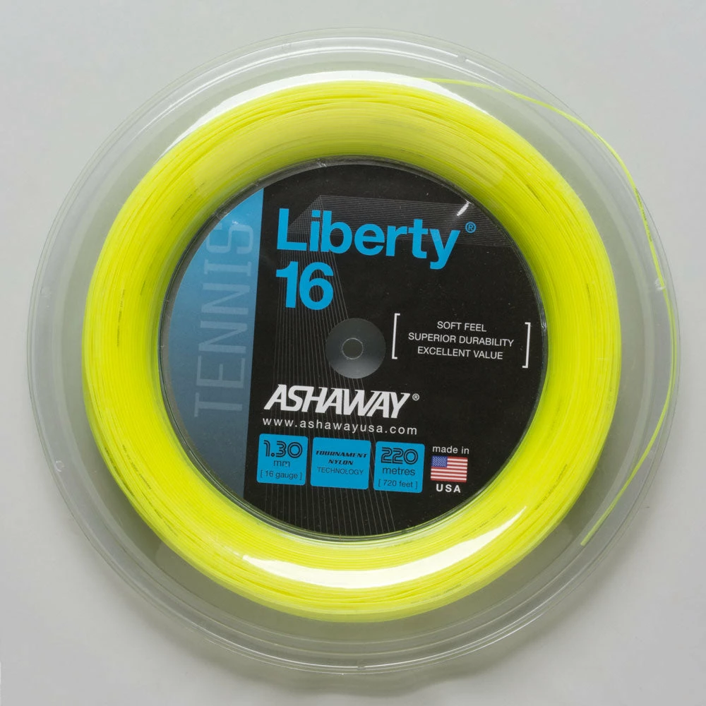 The Ashaway Liberty 16 720′ Reel of tennis string provides players with an affordable, soft and durable nylon to enhance the hitting experience. Players looking for lively, responsiveness will enjoy this string.