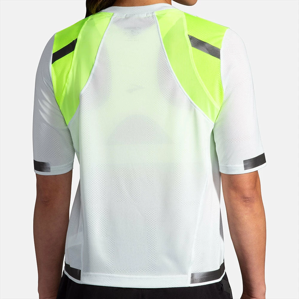 When it’s time for late-night exercise, the Brooks Carbonite Short Sleeve keeps you cool. As part of the Run visible collection, this short sleeve shirt uses reflective accents in high-motion zones to increase visibility in low-light conditions. High-visibility material reflects the light from a car’s headlights directly back toward the driver, helping you remain seen during dark runs.