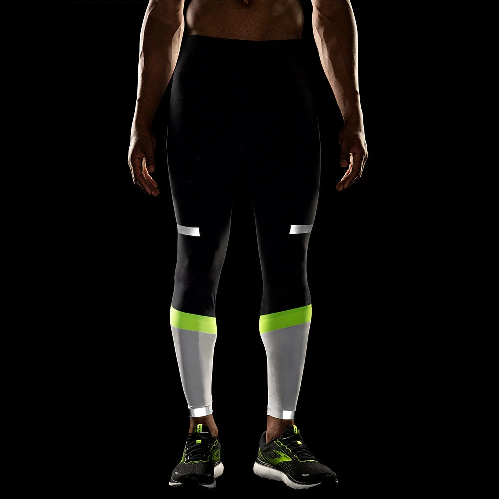 The Brooks Carbonite Tight gives runners coverage for cool-weather runs that also shines after dark. As part of the Run Visible collection, these running tights use reflective elements in high-motion areas to increase visibility in low-light situations. Highly reflective materials send light from a car’s headlights directly back to the driver, helping you remain seen during late-night workouts.
