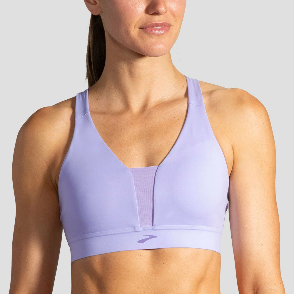 Run-ready support meets a bold and breathable style in the Brooks Drive Plunge Run Bra! As part of the Brooks Drive collection, this run bra holds you in during high-impact exercise, moving with your body while providing just-right compression to reduce motion. Enjoy customizable coverage from the removable cups with envelope pockets. A strappy open back and strategic mesh in high-heat areas provide ventilation and bold style. When you need a run-ready bra that works as hard as you, choose the Brooks Drive Plunge and chase your goals!