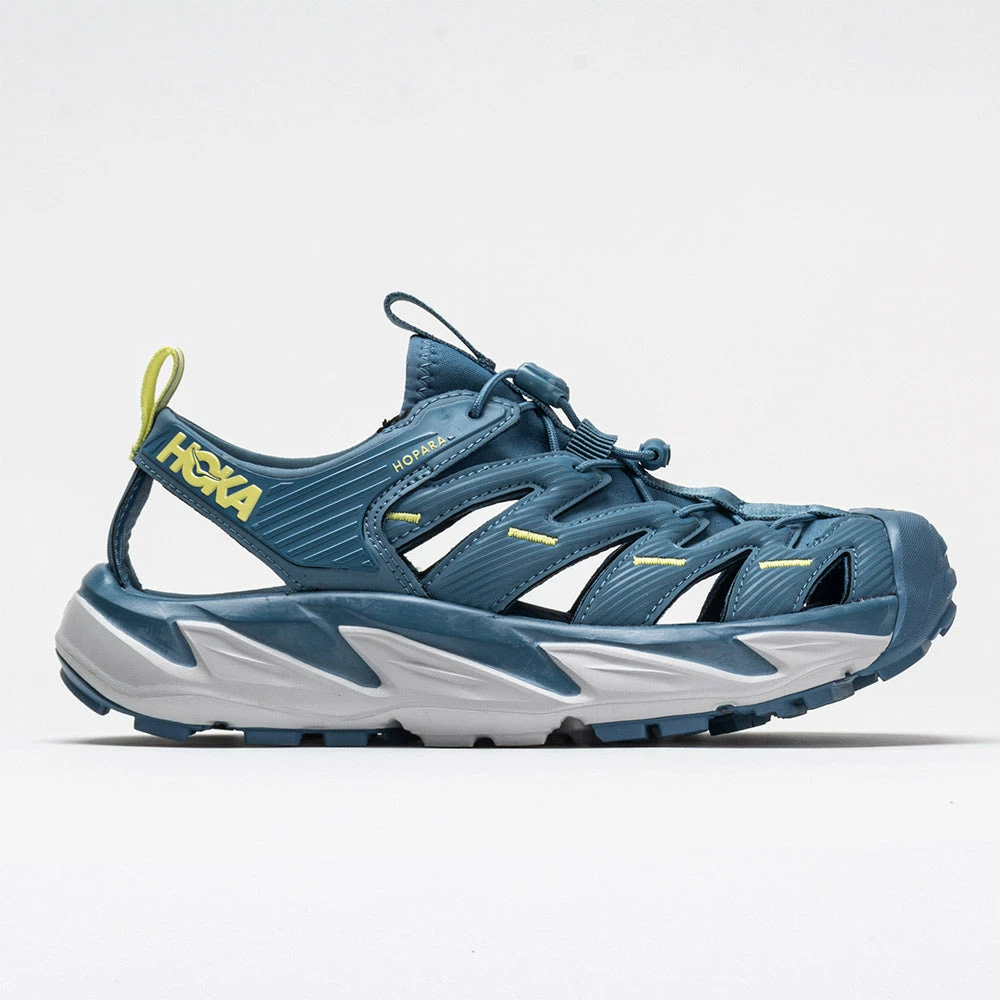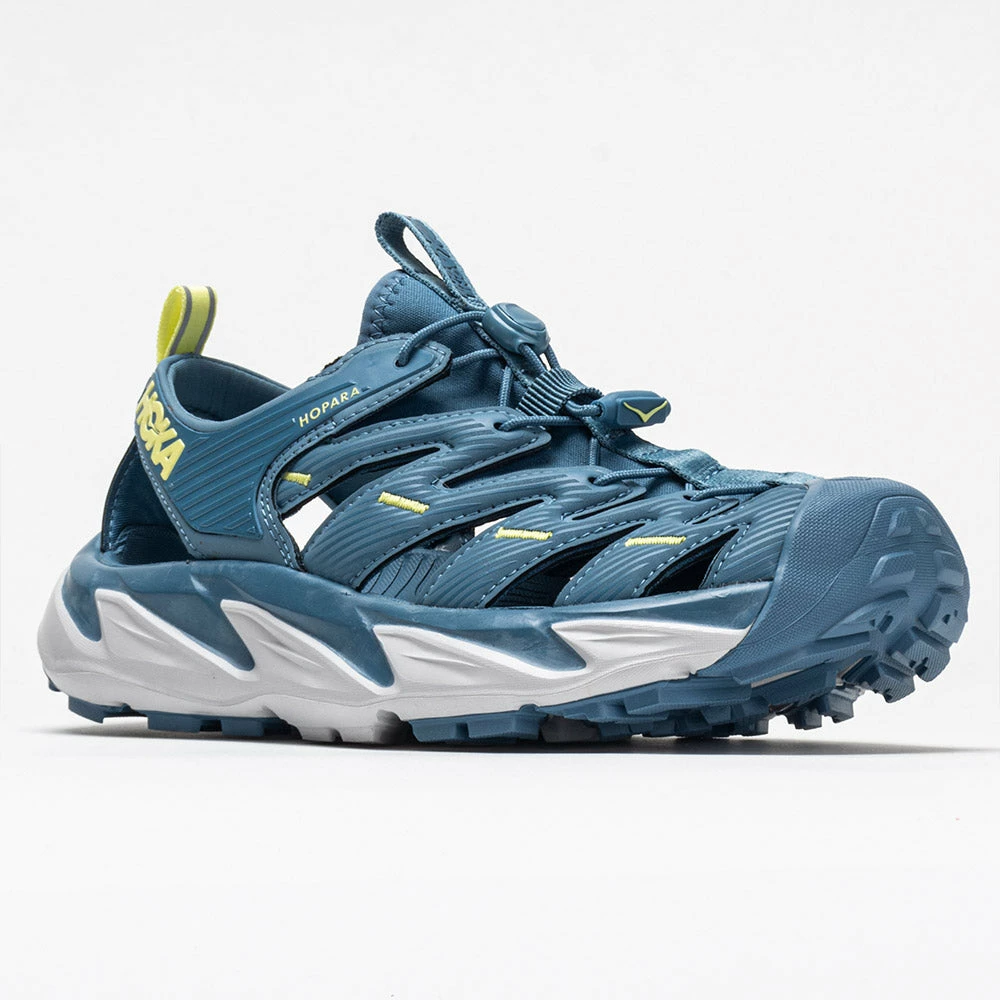 Navigate technical terrain with ease in the HOKA Hopara. These mountain sandals were built for the outdoor explorer, with a protective upper, responsive midsole, and a sticky outsole to grip slick surfaces. Enjoy a locked-in fit with strategic cutouts for drainage to keep you dry in wet conditions. Versatile 4mm multidirectional lugs dig deep into the dirt to generate grip on uneven surfaces. The rubberized toe cap offers protection against trail debris, so you can make the most out of your off-road adventures.
