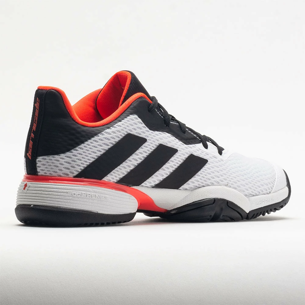 The adidas Barricade Junior gives young players the platform for hard court domination. These junior tennis shoes feature an intuitive lacing system that locks you in by pulling down the tongue to match your foot shape. In the heel, a Geofit system helps you feel connected with your footwear. Underneath, a cushioned Adiprene midsole and Torsion System add comfort and stability. Made with recycled materials, the adidas Barricade Junior takes a step toward ending plastic waste.