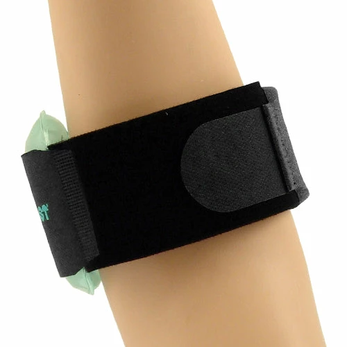 “The Aircast Pneumatic Armband contains a small aircell that focuses more pressure on the involved muscle and less around the arm. Laboratory tests show that the pressure under the aircell is about 50% greater than the average under the rest of the band’s circumference. This concentration of pressure means that more compression is applied where it is needed, while the uninvolved muscles and the flow of blood are constricted less.”