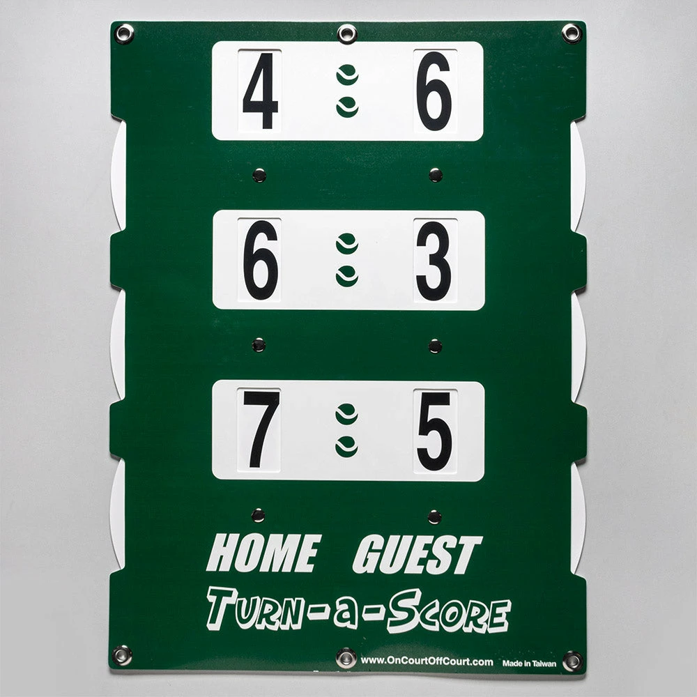 Hang the Turn-a-Score tennis scorekeeper on the fence or the net of the court to easily view the matchs score. Players can simply dial the numbers on the unit to change the score. For complete fairness, the score can be read simultaneously on both sides.