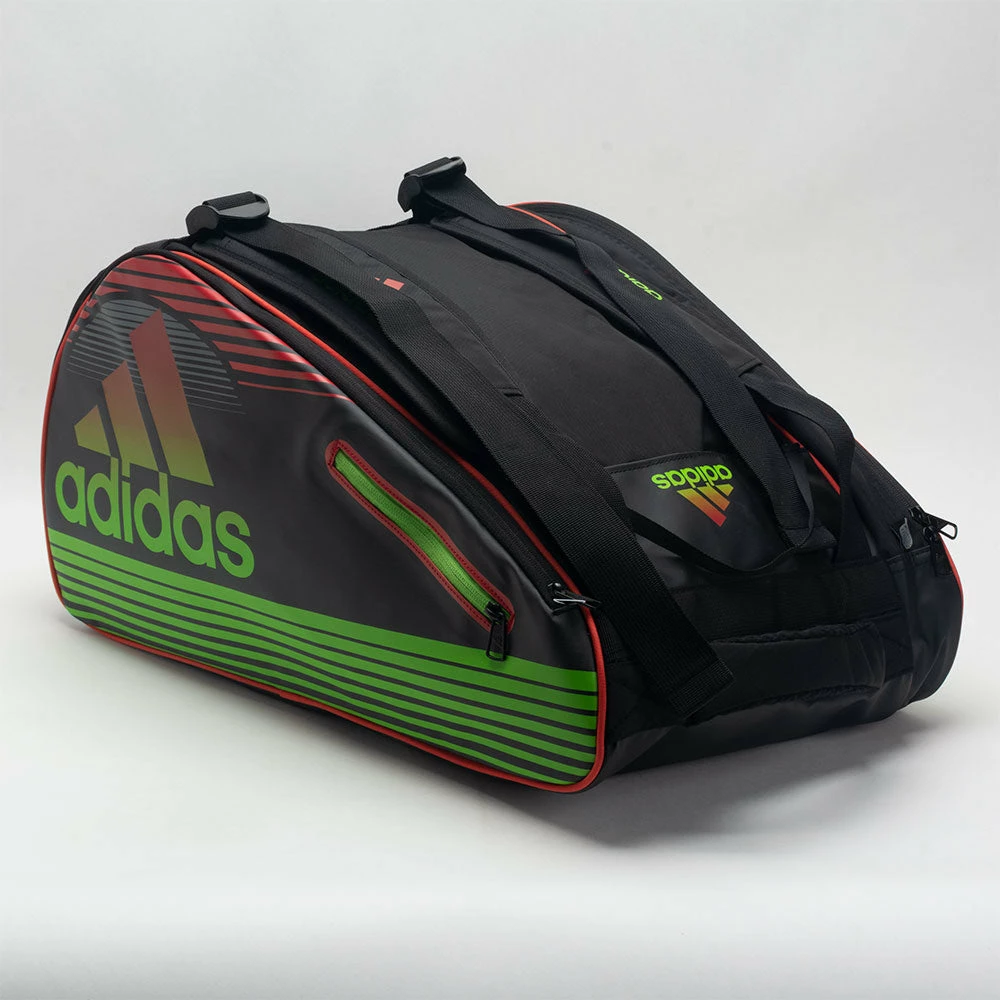 Surprise your opponents with style and groundbreaking design. The adidas Tour Racquet Bag features multiple compartments and quality materials to take everything you need to the court. Carry up to 12 paddles in the large central compartment with two side compartments for racquets. The ventilated shoe compartment helps you organize your gear, so you can focus on getting the win.