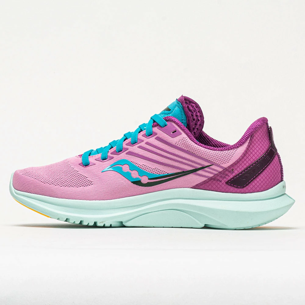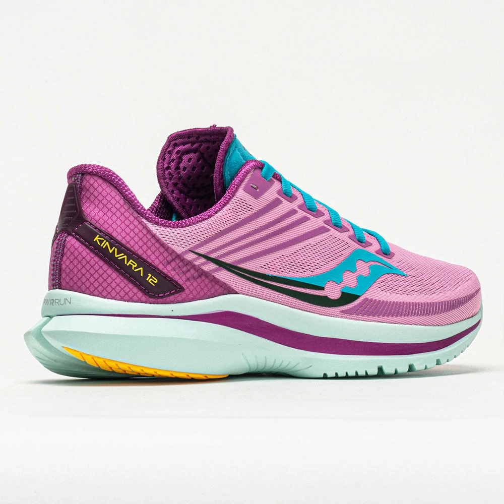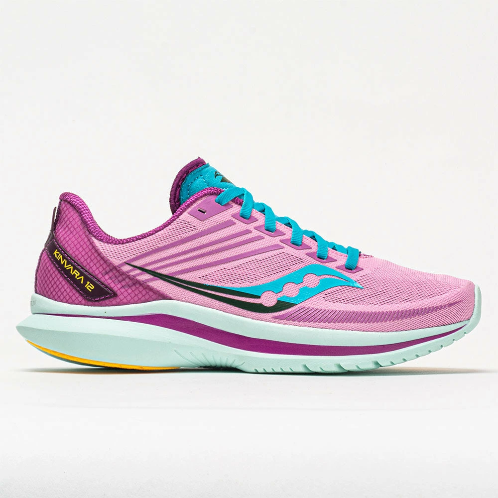 Run at lightning speed in the Saucony Kinvara 12! Combining lightweight construction and springy cushion, everything about these neutral running shoes brings you to the finish line faster. A stripped-back upper removes restrictions to unleash your speed. Savor every stride on the PWRRUN midsole that provides light and responsive cushioning to push the pace. When you feel like turning up the tempo, lace up the Saucony Kinvara 12 and hit the ground running!