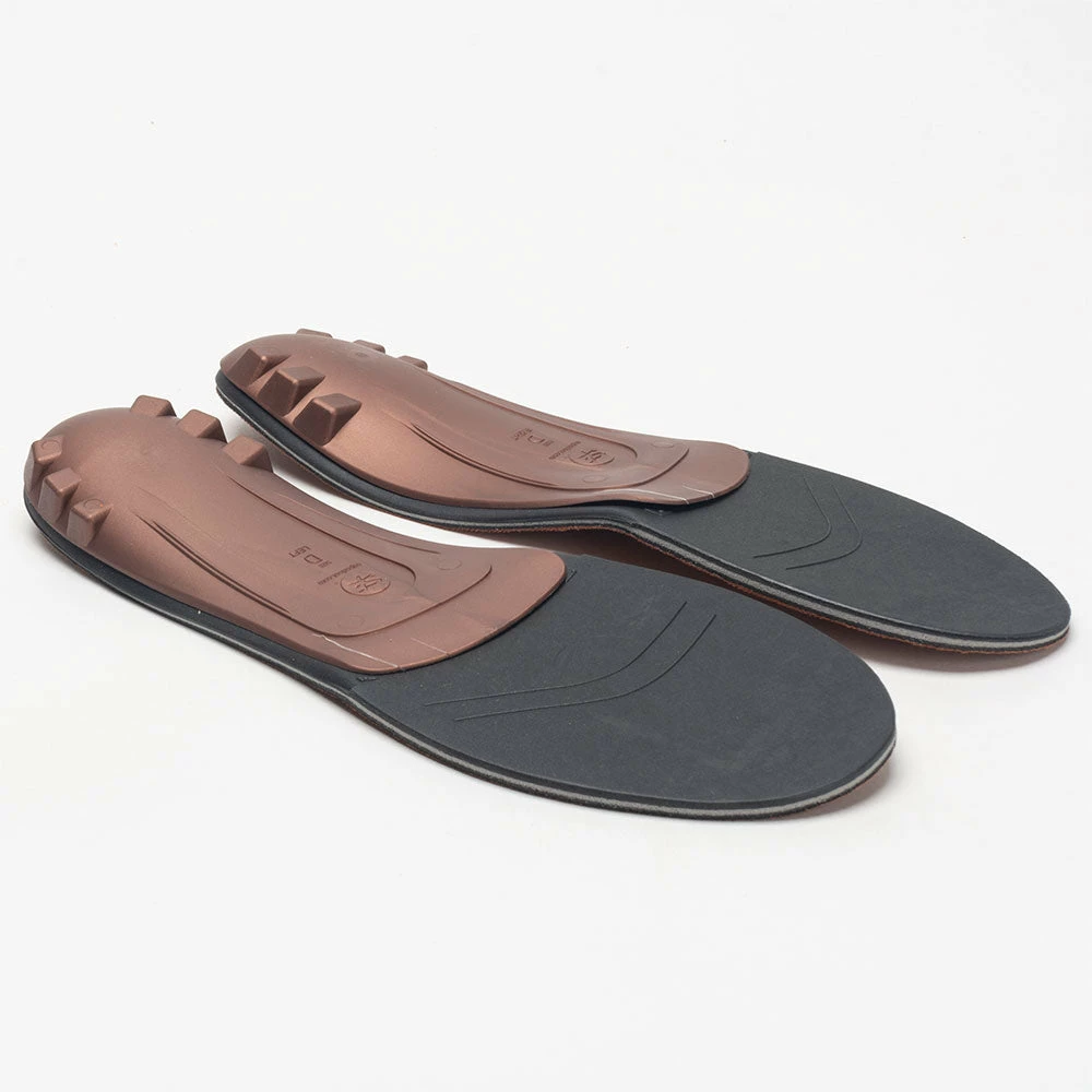 Superfeet Copper DMP® naturally molds to your unique foot shape through daily wear, giving you a personalized fit without having to heat the insole in an oven. As the DMP® foam adapts to the shape of your foot, the insole’s biomechanical integrity remains intact for support and stabilization. The top layer cradles the shape of your foot while the mid-layer interactive PU foam comforts without compromising stability. The bottom ‘D-Foam’ llayer and stabilizer cap maintain ideal shape and support.