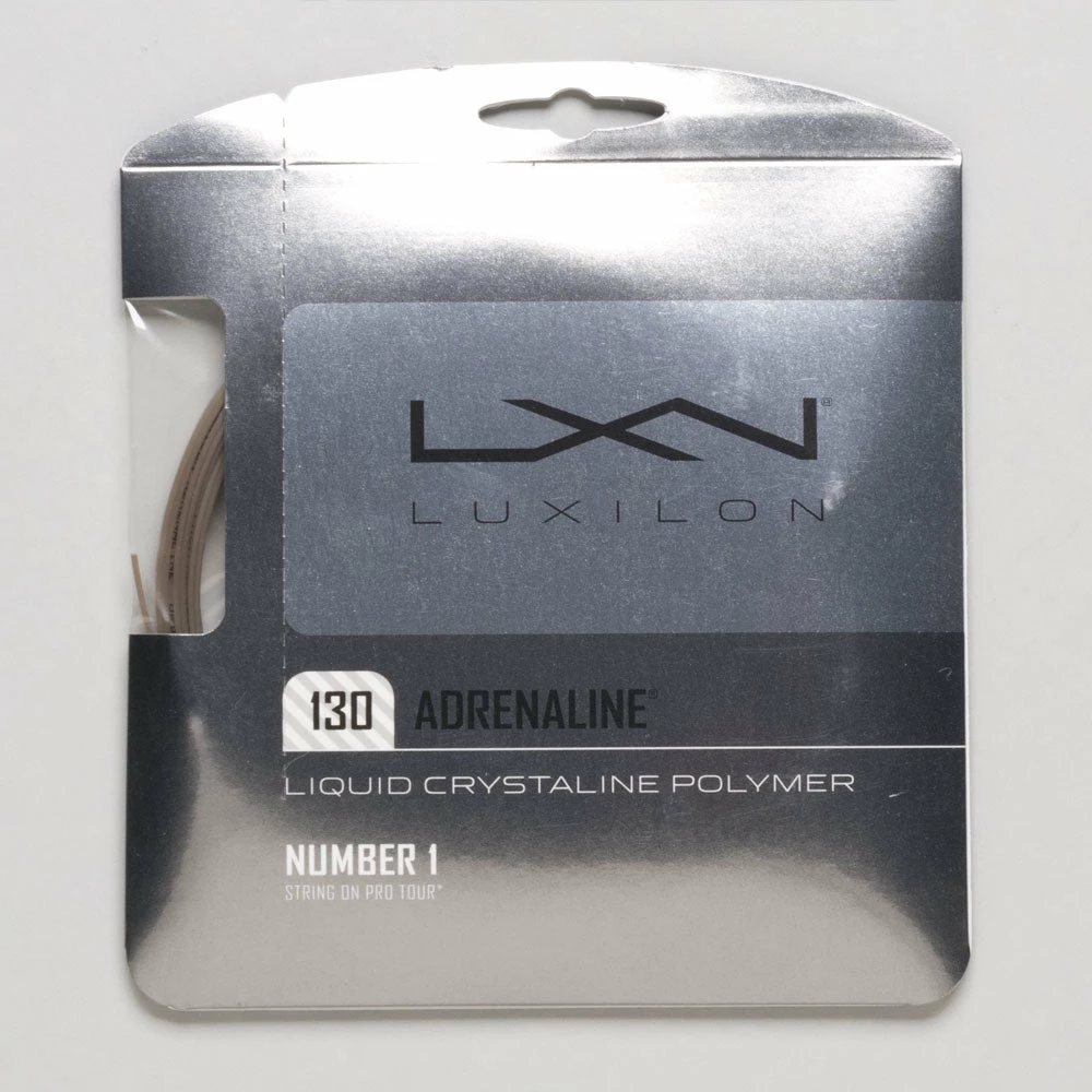 Polyesters. Adrenaline is a liquid crystalline polymer string that provides abundant power, precision and playability for aggressive and exciting players. Expect tour quality performance and outrageous game enhancement.