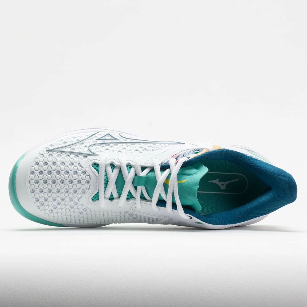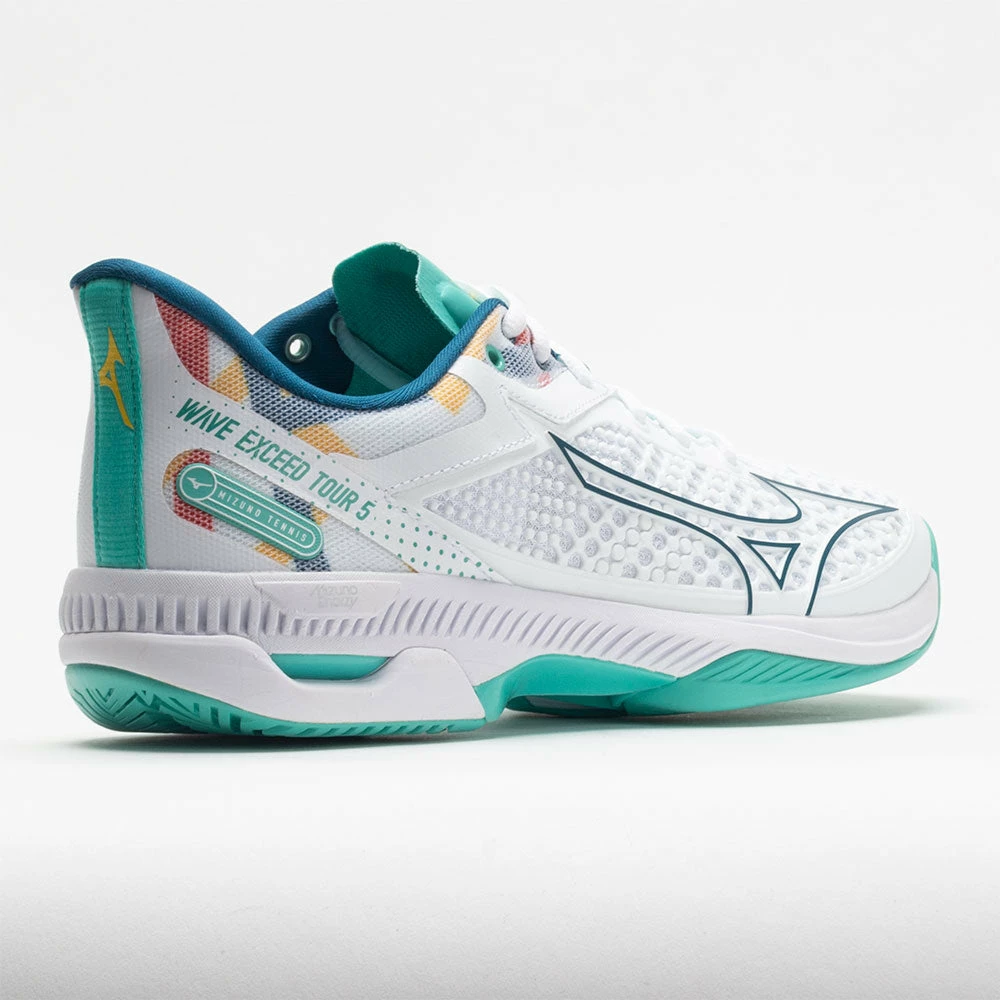 Faster, lighter and more flexible than before, the Mizuno Wave Exceed Tour 5 is for advanced players seeking explosive on-court performance. MIZUNO ENERZY foam in the midsole delivers quicker turns, starts and stops for ultimate energy return. The bootie construction and a remodeled 3D-SOLID upper design add flexibility and comfort, allowing the foot to integrate with the shoe no matter how intense the movements. MIZUNO WAVE Technology increases ankle stability and shock re-distribution while the DuRubber outsole provides the durability and longevity top players demand.