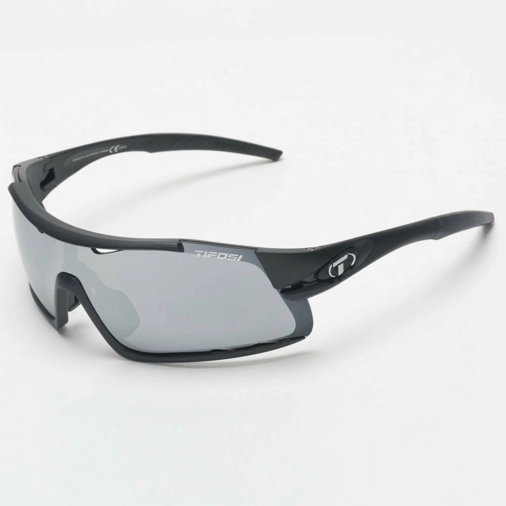 Grab the performance-ready, sport design of the Tifosi Davos Sunglass in Matte Black for your next race. These lightweight sunglasses feature a full frame design thats perfect for eye protection during cycling, running, or any other outdoor activities. The vented lenses are supremely strong and highly resistant to UV and chemical damage. Rubber nose and ear pieces help keep these glasses securely in place during movement so you can focus solely on your performance.