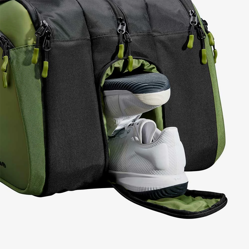 - 3 Main compartments for equipment (up to 15 racquets), apparel and accessories