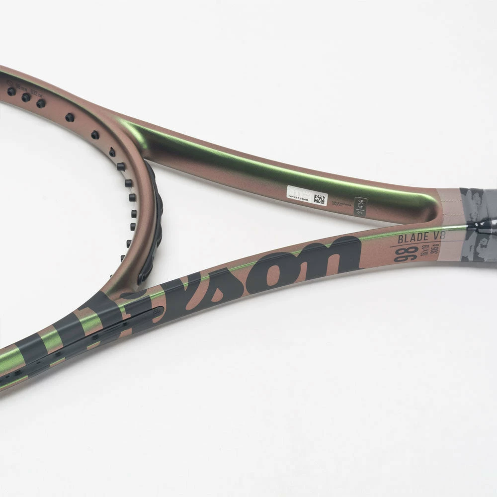 Meet your new secret weapon for the match. The Wilson Blade 98 (16×19) v8 brings precision, style and control to your game. FORTYFIVE° layup technology increases flexibility and stability for a more connected swing. The DirectConnect end cap is attached to the carbon fiber portion of the handle to improve feel and torsional stability. Show off your style with a color-shifting design that changes as the frame moves. With the Wilson Blade 98 (16×19) v8 in your hands, there’s no limit to your potential!